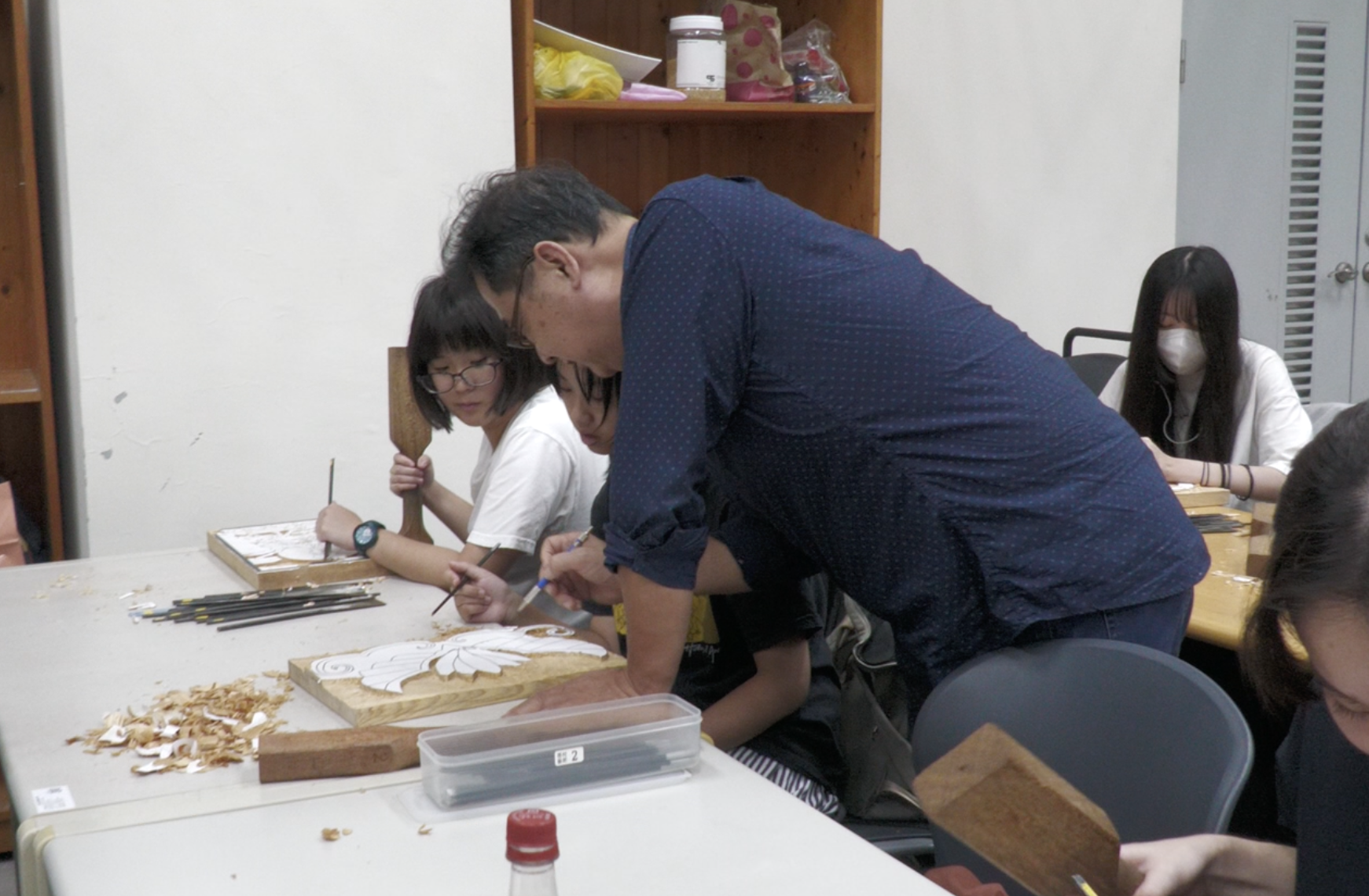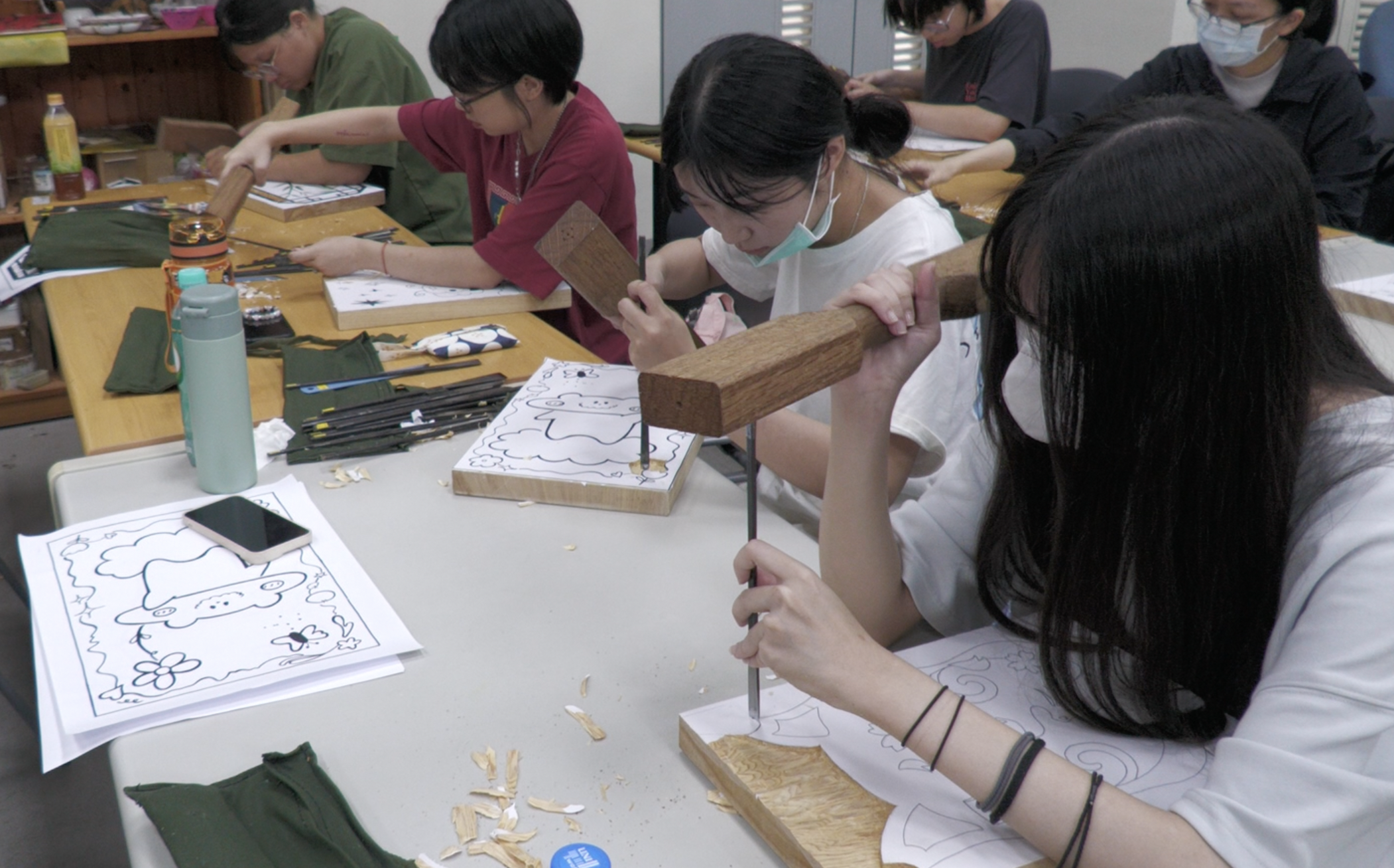雕刻流程依序分為「初胚—中胚—細胚」,透過反覆練習,學生將逐步掌握雕刻刀的運用與形體塑造的技巧。除了製作本身,老師亦會教授雕刻刀的打磨方式、作品的保存與維護方法,使學生在創作過程中,不僅體驗傳統木雕的工藝之美,更能深入理解木雕藝術的文化意涵與精神。