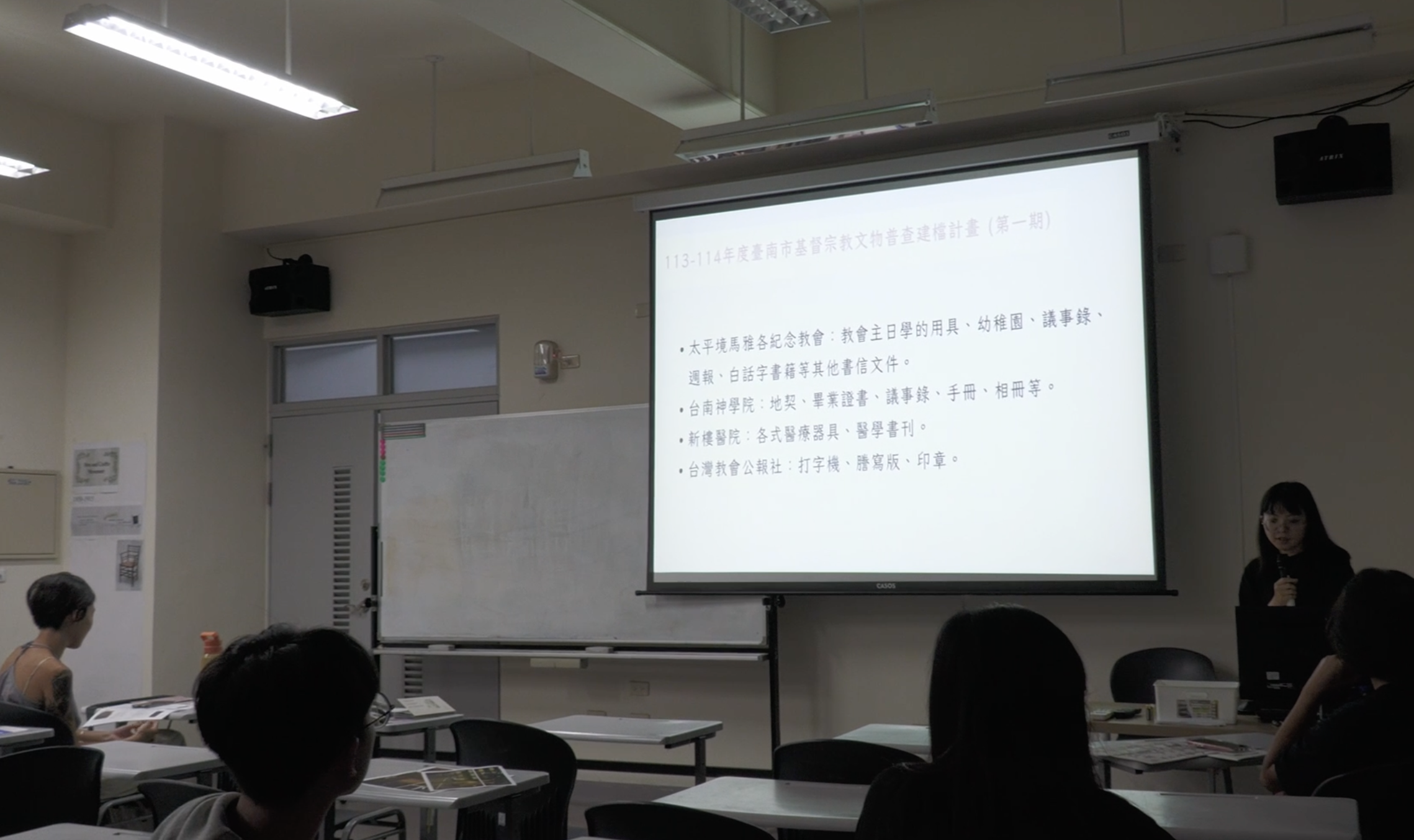 課程後段聚焦文化資產管理的架構與方法,並帶領學生細讀臺灣現行文化資產法規,以強化法制與制度面向的理解。搭配田野調查計畫的第二次彙報,學生將進一步呈現基地現況分析與文化判讀成果。最後,課程以無形文化資產兩週專題作結,從概念、影響力、研究取向到反思與展望,使學生能全面理解文化資產的多樣性與深度。